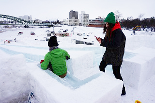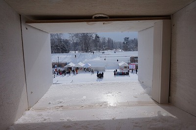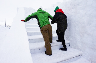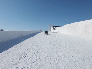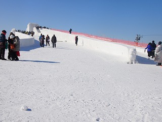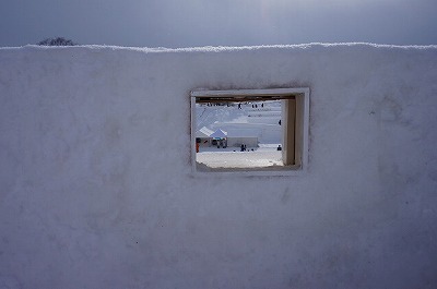| 大雪像頂上には覗き窓!何が見えるかな? | 一部階段あります。巨大雪像のすべり台 |